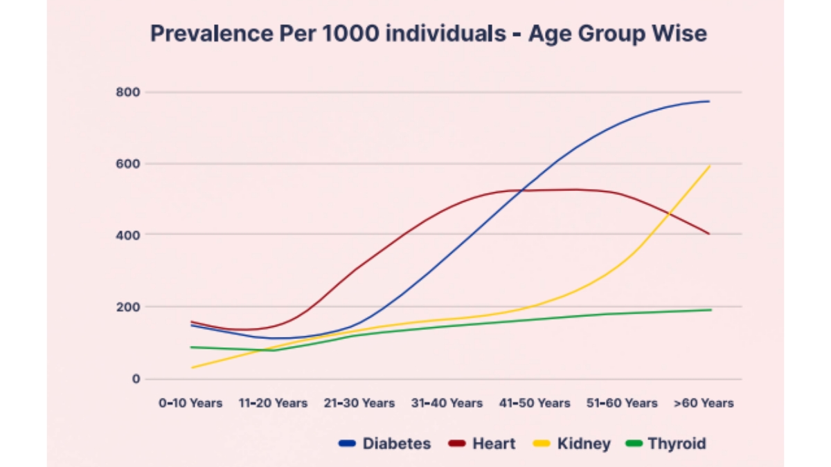 According to Bharat Aarogyam Score, widespread silent health risks are prevalent across the population in India. More than 9 out of 10 individuals have shown early signs of at least one health condition.