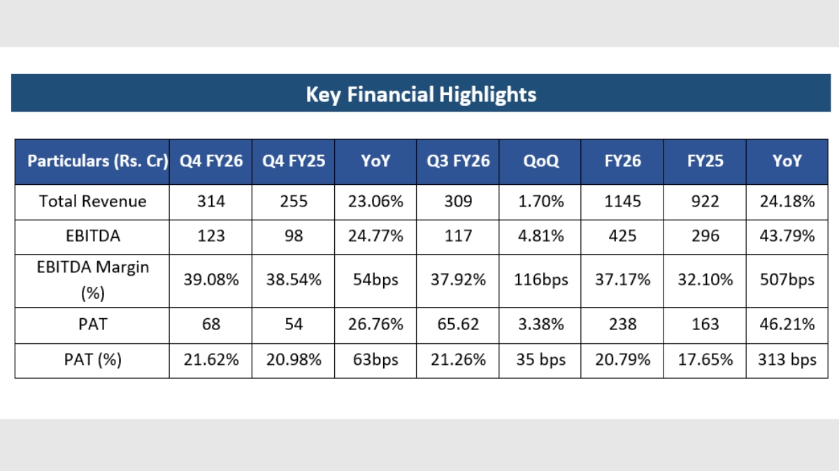 - Q4FY26 EBITDA Margin: 39.08 per cent, up by 54 bps (Q4FY26 EBITDA Margin at 38.54 per cent)