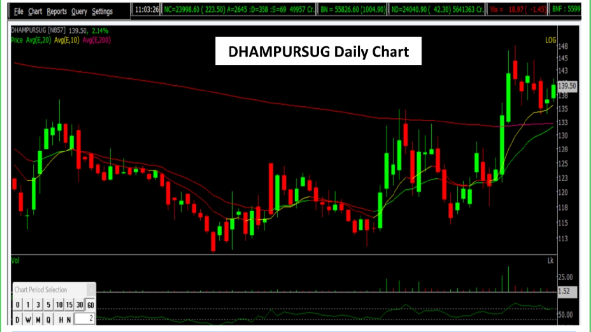 HDFC Securities has set the Dhampur Sugar Mills share price target at Rs 149. Maintain stop loss at Rs 132.5.