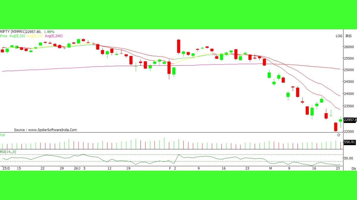 Vinay Rajani, Senior Technical Research Analyst, HDFC Securities, said that today's bounce kindles hopes for a sustained pullback, but follow-through gains are needed to signal a trend reversal. Nifty faces stiff resistance at 23,378, with support clustered near 22,600.